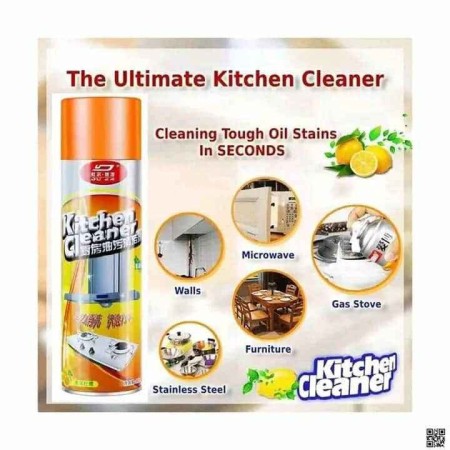 রান্নাঘরের জমে থাকা তেল, চর্বি, পোড়া দাগ ও ময়লা পরিষ্কার করতে শক্তিশালী ফোম ক্লিনার।